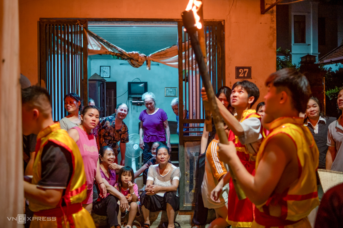"Khi còn thanh niên tôi cũng đi múa lân, cũng phun lửa. Ở đây là vậy, Trung thu ở Cao Hạ trang trọng lắm", ông Nguyễn Văn Quý, 74 tuổi, nói.