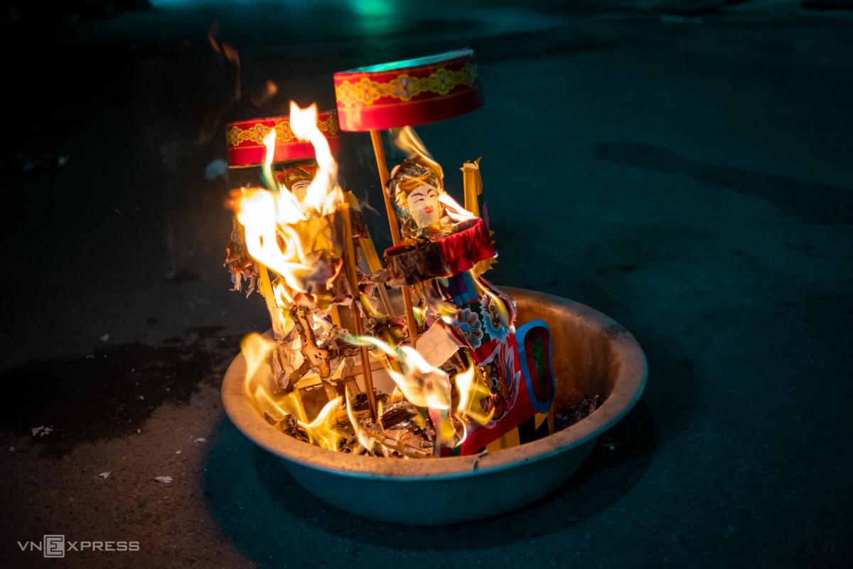Sau khoảng ba tiếng khi đoàn lân đã rước xong, các gia đình hóa vàng và phá cỗ Trung thu.